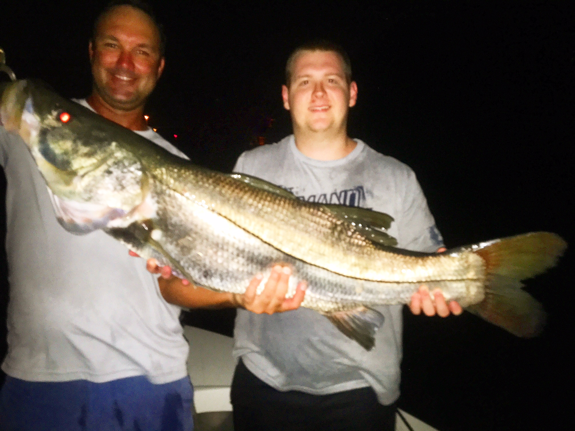 There are only a handful of inshore fishing guides in Florida who specialize in targeting trophy snook, and Capt. Saki stands among the top of them. Many other guides claim to specialize in snook fishing; however, Capt. Saki has been catching MONSTER snook all over the state since he was a teenager. Many avid fishermen don’t realize that there are very specialized tactics which can be used to target ONLY large snook (15 to 35lbs), and Capt. Saki has been developing those tactics for over 20 years. One important aspect of this type of fishing is that it occurs primarily at night and early morning (between 9:00PM and 3:00AM). Snook are highly evolved “ambush” feeders, meaning they often wait in protected areas allowing them to hide until a food source worth their while comes along for them to engulf. The cover of darkness aids in the snook’s ability to conceal itself, making them primarily nocturnal feeders. Another important aspect of nighttime snook fishing is that there is considerably less boat traffic than during the day, allowing big snook to be more comfortable with their surroundings and thus more likely to eat. You often won’t encounter another boat all night long when fishing some of Capt. Saki’s favorite locations.