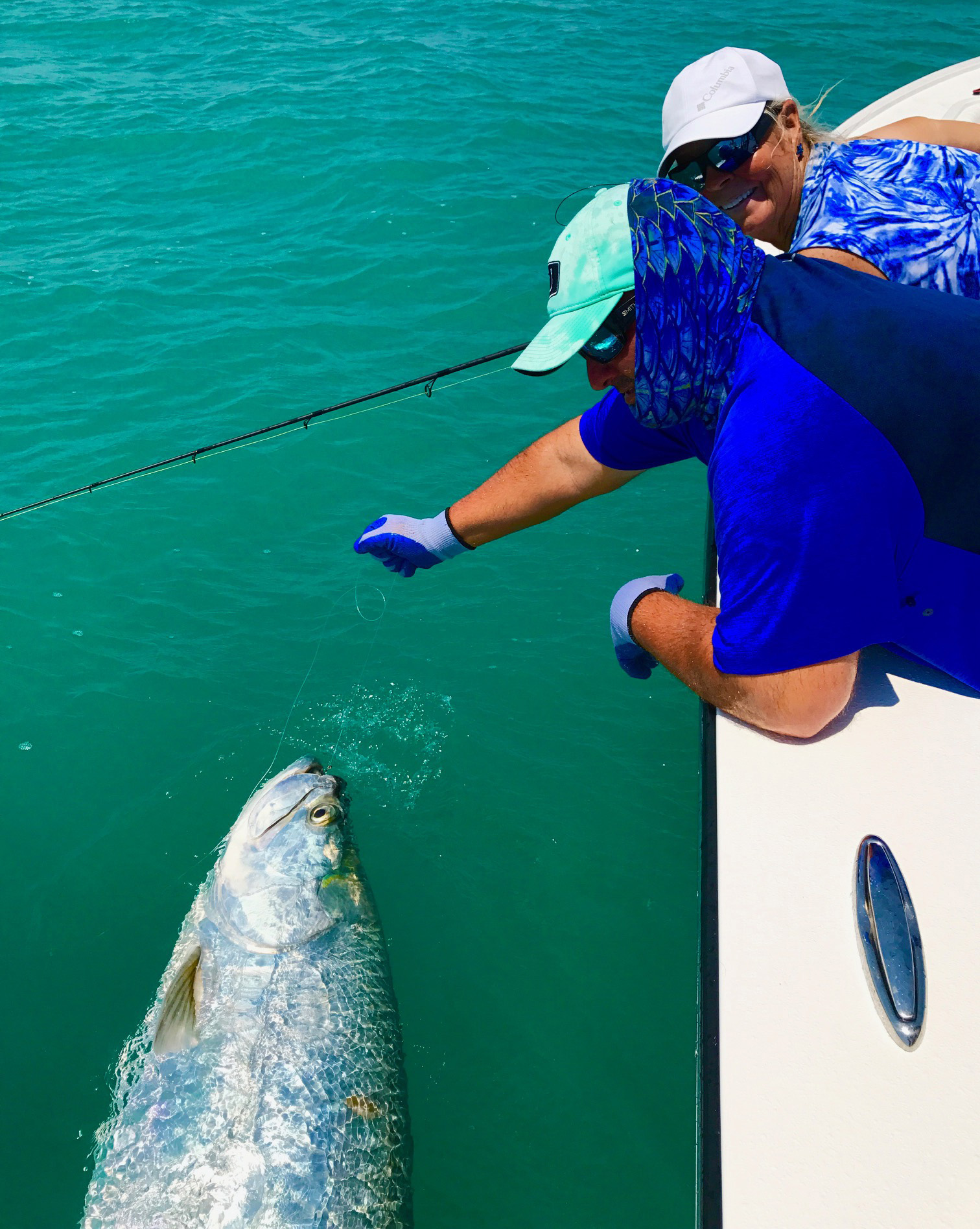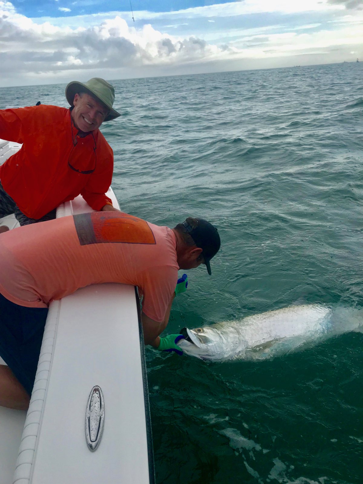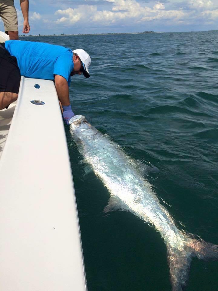 Beach Fishing in Boca GrandeCapt Saki also specializes in fishing the calm, secluded beaches surrounding Boca Grande Pass. This method gives the angler a more personalized fishing experience away from the hustle and bustle of the pass. Beach fishing involves the use of quiet, electric trolling motors which allow the captain to stalk pods of tarpon that often cruise the beaches only a few feet from the sand. This is a live bait technique where the captain watches for dark pods of tarpon swimming just under the surface of the air-clear water in attempt to allow his anglers to cast their bait at individual or small numbers of fish. This “sight fishing” truly tests the skills of both captain and angler alike and is the definition of sport fishing for tarpon. Capt Saki often guides his anglers to numerous big tarpon while not coming across another boat for hours. Successful beach fishing for tarpon is only done by the most experienced guides, who know where the fish will be given any environmental conditions. |