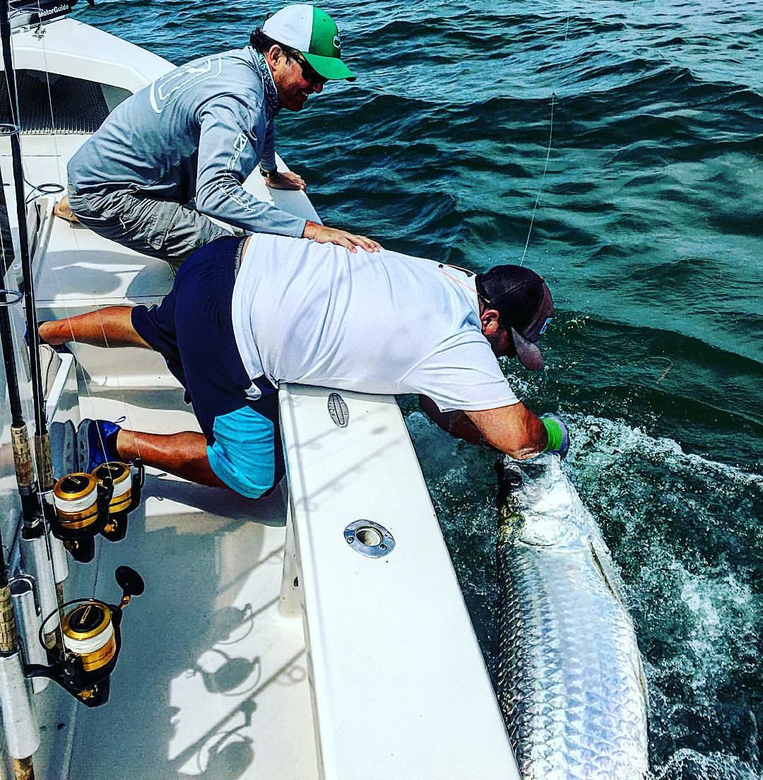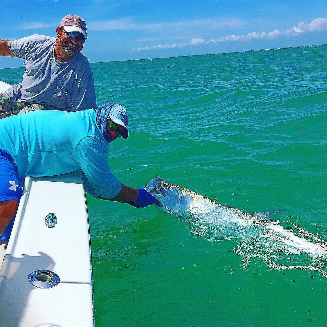 Capt. Saki specializes in catching giant tarpon in world renowned Boca Grande. Every year between the middle of April through July, hundreds of thousands of giant tarpon make their yearly migration to the areas surrounding Boca Grande Pass at the mouth of Charlotte Harbor. These giant tarpon, ranging from 80 to over 200 pounds, fill the pass to spawn and to gorge themselves on the ever-plentiful bait supplies consisting of crabs, shrimp, and bait fish. It is very common to see hundreds of huge tarpon crashing through the surface of crystal clear waters all at once. This is a site that every true tarpon enthusiast needs to experience at least once in their lives. Capt. Saki has been fishing the waters around Boca Grande since early childhood, and is close acquaintance with some of the true pioneers that first discovered the secrets of tarpon fishing in Boca Grande Pass many years ago. |